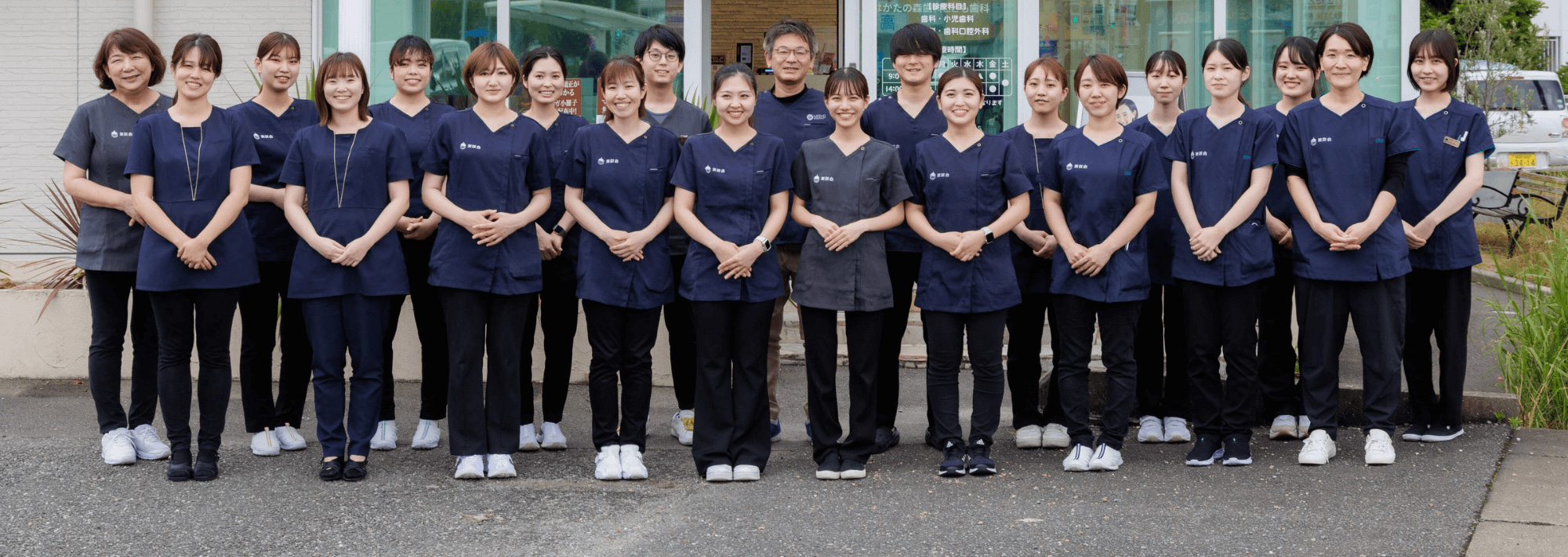 当院では上記の理念の元、「歯を治療するためだけの場所」ではなく、『幸せな人生が過ごせるよう、前向きになれる場所』として、お口の中のお話からどう人生を楽しむかをご提案できる歯科医院を目指しています。一人ひとりの患者様を大切にし、健康で素敵な笑顔で人生を送っていただきたくスタッフ一同一生懸命働いています。